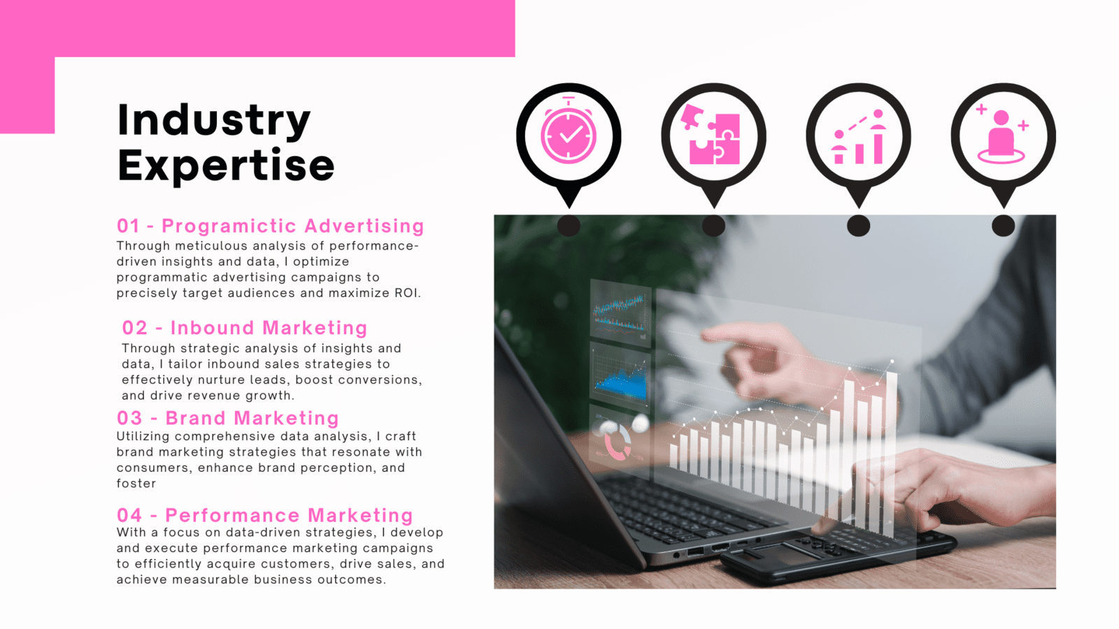 Delivering results-driven marketing expertise, I empower businesses to strengthen their brand identity, attract converting audiences, and optimize sales funnels to drive a measurable ROI. With a focus on performance-driven insights, I guide businesses in leveraging data to refine their marketing strategies for maximum impact. By identifying patterns and trends within consumer data, I enable my clients to make informed decisions that drive growth and competitive advantage in their respective industries.